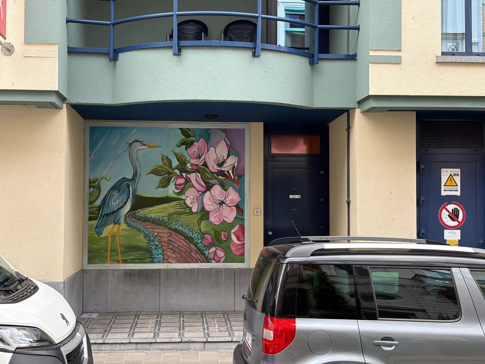Alles gebeurde in de binnentuin, waar meteen ook de inspiratie werd gevonden: de bloesems, de (echte en de valse) reiger, het bakstenen pad, de pergola met de blauwe regen, de kanarie en de zebravink samen in de volière…