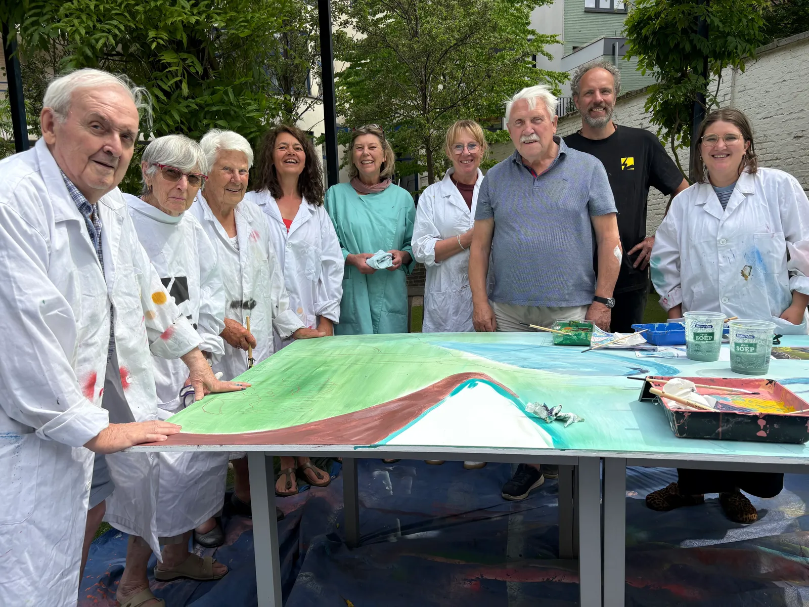 Met bijzondere dank aan iedereen die meeschilderde die dag (vlnr.op de groepsfoto): René, Victoire, Mariette, Martine, Katrien, Conny, Gilbert, Jesse en Hilke.