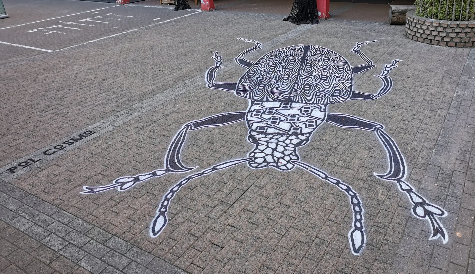 Pol Cosmo is een Gentse straatkunstenaar. Al jaren tekent en kleurt hij (liefst in de luwte) kleine insecten en plakt ze overal in de stad.