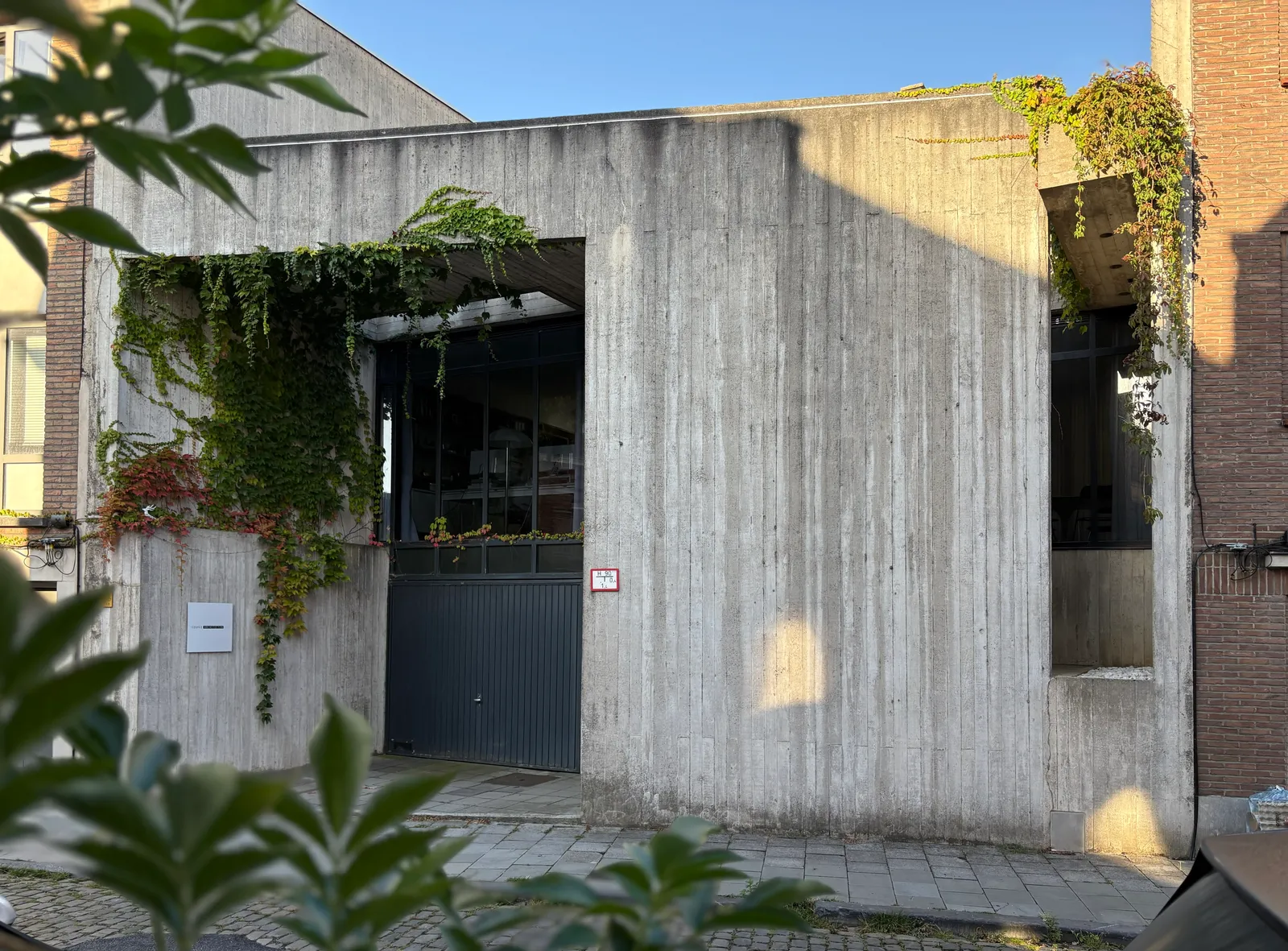De plaats van het werk is gedurfd: het gaat hier over de ruw bekiste betonnen muren van hét architecturele monument in onze wijk: de voormalige doktersprakijk van dokter Jacques Coupez, gebouwd in 1972 in brutalistische stijl, naar een ontwerp van Ivan Van Mossevelde (die ondertussen ook al vele jaren in Italië woont).